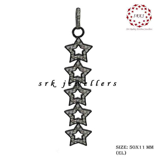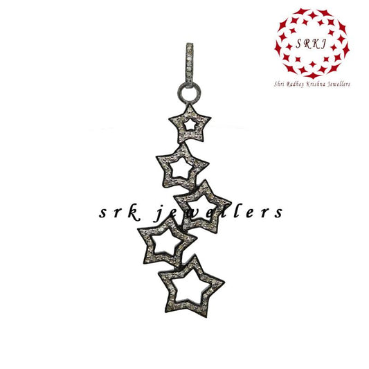 5 Star Pave Diamond Pendant, Unique Stars Joint Hanging Pendant, Gift For Someone
