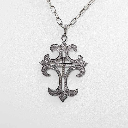 925 Solid Sterling Silver Handmade Pave Diamond Fancy Cross Pendant, Natural Designer Pendant, Christmas Gift