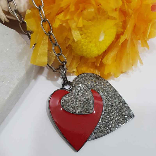 3 Layers Of Heart Red Enamel Pave Diamond pendant, Gift For Lovers, Valentine Gift