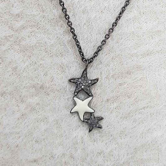 3 Layers Star With Cream Enamel Pave Diamond Pendant, Beautifully Star Necklace, Silver Jewelry, Birthday Gift