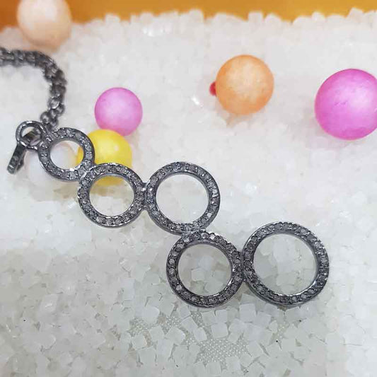 925 Solid Sterling Silver Fancy Designer Pave Diamond Connector, Round Connector, Silver Jewelry