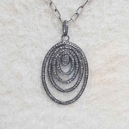 4 Layer Of Pave Diamond Oval Style Silver Pendant, Fancy Necklace, Gift For Someone