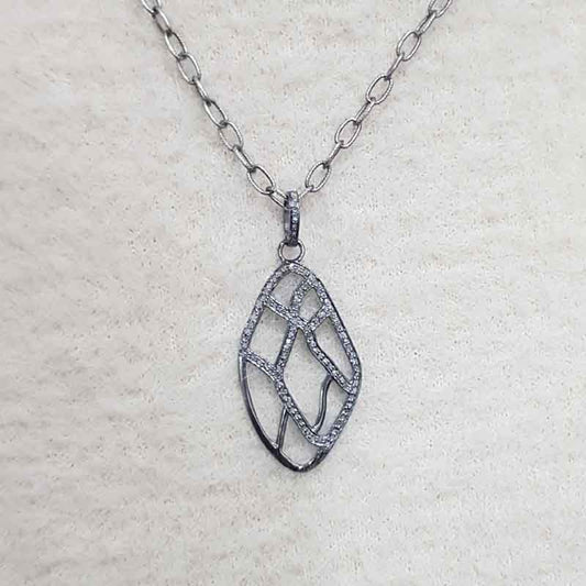 925 Solid Sterling Silver Natural Pave Diamond Fancy Designer Pendant, Silver Jewelry