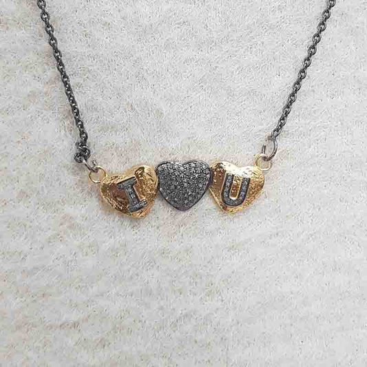 3 Joined Heart With Pave Diamond Love Pendant, Beautiful Love Necklace, Silver Jewelry