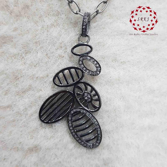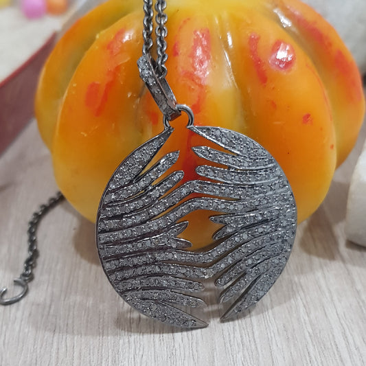 925 Solid Sterling Silver Natural Pave Diamond Fancy Designer Pendant, Gift For Her, Him