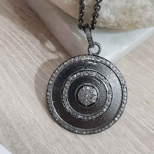 3 Circle Of Pave Diamond Layers Round Disk Pendant, Unique Design Round Pendant, Gift For Her, Him