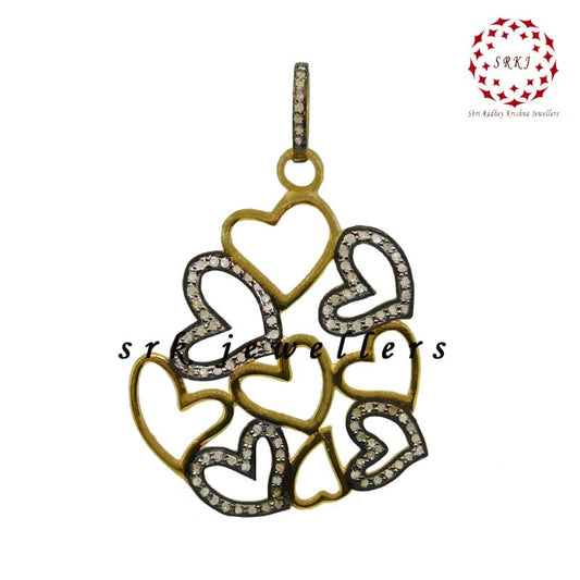 Bunch Of Heart Designed 925 Sterling Pave Diamond Pendant, Valentines day Gift, Promise Gift