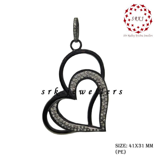 Gorgeous Handmade Love Designer Pave Diamond Silver Pendant, Silver Jewelry