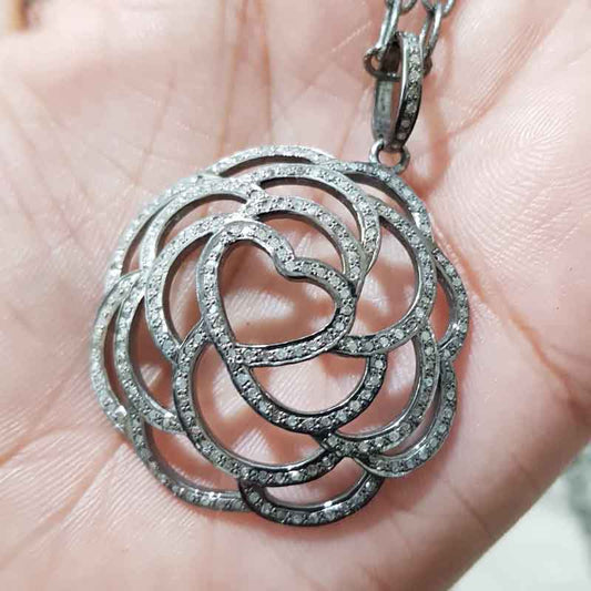 A Designer's Pendant Masterpiece, 925 Sterling Silver Handmade beautiful Round Pendant With Pave Diamond