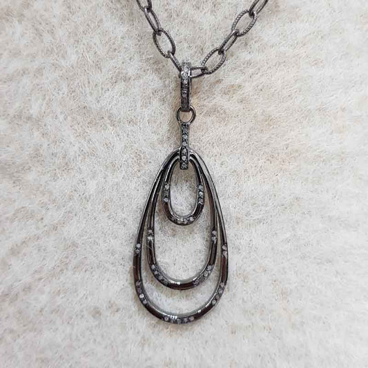Oval Pave Diamond Handmade Silver Pendant, Fancy Necklace, Silver Jewelry