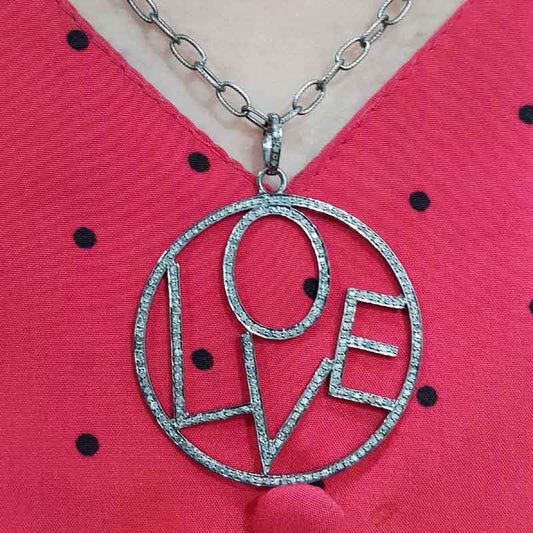 Round Designer Solid 925 Sterling Silver Love Pendant, LOVE Round Shape Necklace, Gift For Lovers