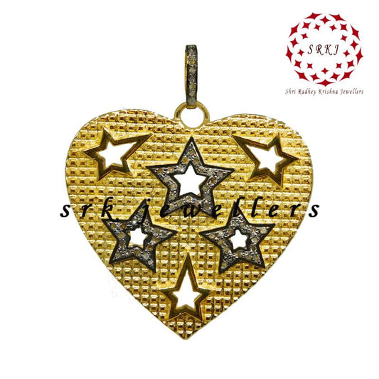 Antique Finish Designer Heart With Stars Pendant, Mini Star With Heart Necklace, Gift For Someone, Lovers Gift