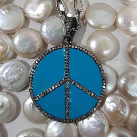 Turquoise Enamel Peace Pendant With pave Diamond Layers, Wedding Gift, Gift For Wife