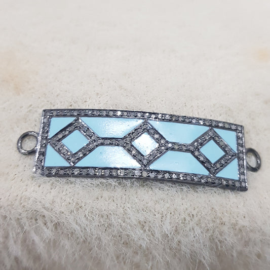 Tortoise Enamel Fancy Designer Glorious Pave Diamond Connector, Silver Jewelry, Gift For Love