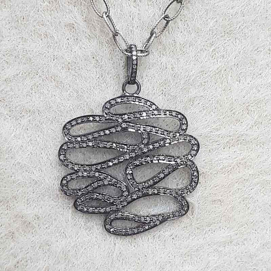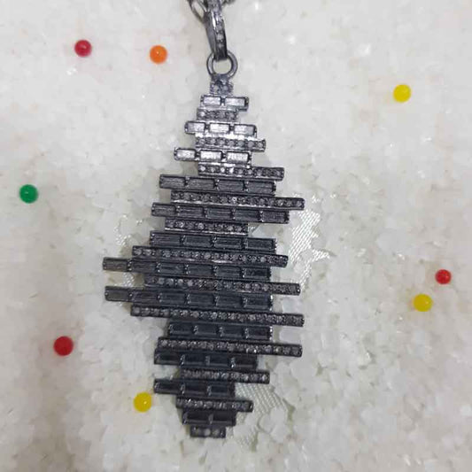Zigzag Style Natural Pave Diamond Silver Pendant, Unique Stylish Necklace, Gift For Mom