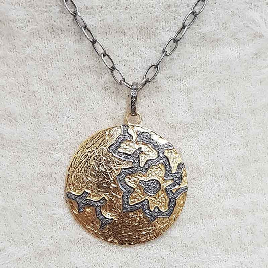 Yellow Pave Diamond Handmade Designer Flower Pendant, Two Tone Round Flower Necklace
