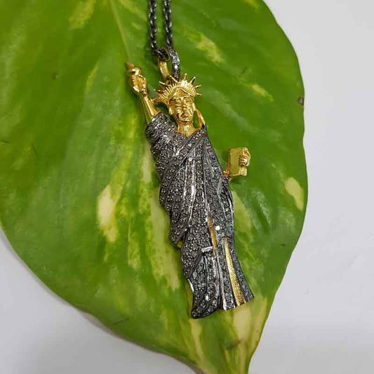 Yellow And Black Statue of Liberty Pendant With Pave Diamond Layers, Silver Jewelry, Gift For Mom