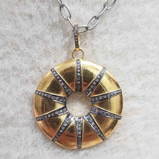 Yellow Polished Fancy Designer 925 Sterling Silver Pave Diamond Pendant, Antique Design Pendant, Gift For Someone