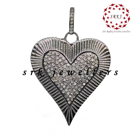 Attractive Pave Diamond Handmade Fancy Designer Heart pendant, Silver Jewelry
