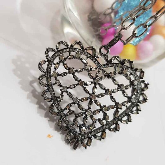 Baguette & Pave Diamond Designer Heart Pendant, Attractive Big Heart Pendant, 925 Sterling Silver Pendant