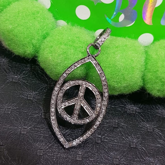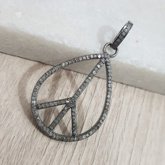 Beautiful Black Pave Diamond Peace Pendant, Silver Jewelry, Gift For Love