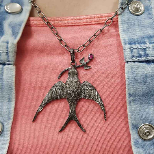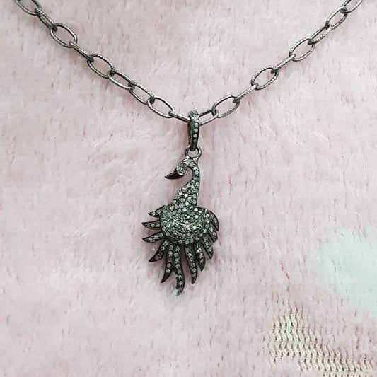 925 Sterling Silver Pave Diamond Handmade Designer Bird Pendant, Black Bird pendant, Silver Jewelry