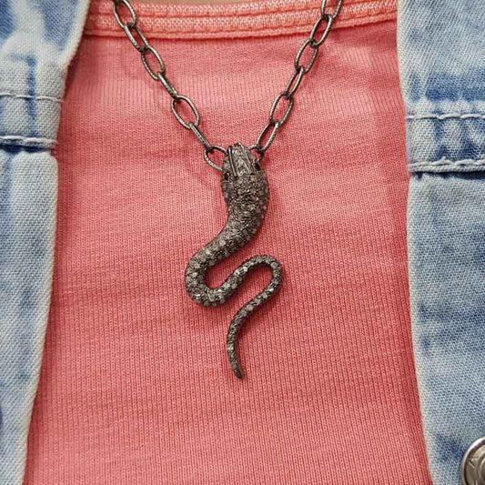 Snake Pendent 925 sterling silver And Pave diamond, Stylish Snake Pendant, Silver Jewelry