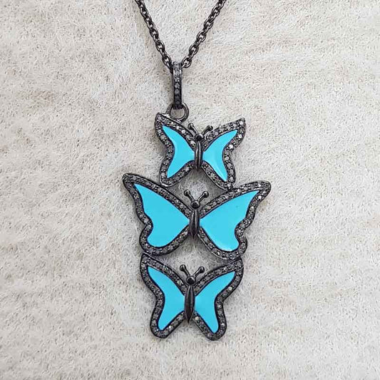 Turquoise Enamel Handmade Designer 3 Layers Butterfly Pendant, Stunning Butterfly Necklace