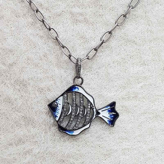 Stunning Fish Pendant With pave Diamond And Enamel, Unique Gift For Special One, birthday Gift