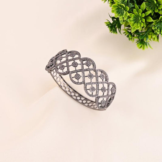 Fancy Bangle, 925 Solid Sterling Silver Natural Pave Diamond Fancy Designer Bangle, Wedding Gift