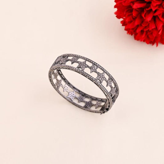 Antique Finish Designer Pave Diamond Stars Bangle, Star Bangle, Handmade Jewelry, Gift For Love