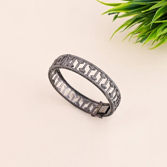 Elegant Black Fully Natural Pave Diamond Bangle, Gift For Bride, Wedding Gift, Silver Jewelry, Classic Jewelry