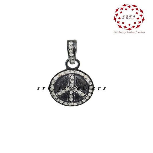 Peace Designer Pave Diamond Charm, Birthday Gift, Silver Jewelry, Cutest Charm