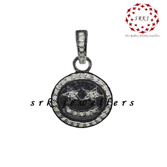 Silver & Diamond Round Moon Star Charm, Handmade Necklace, Silver Jewelry, Gift For Her