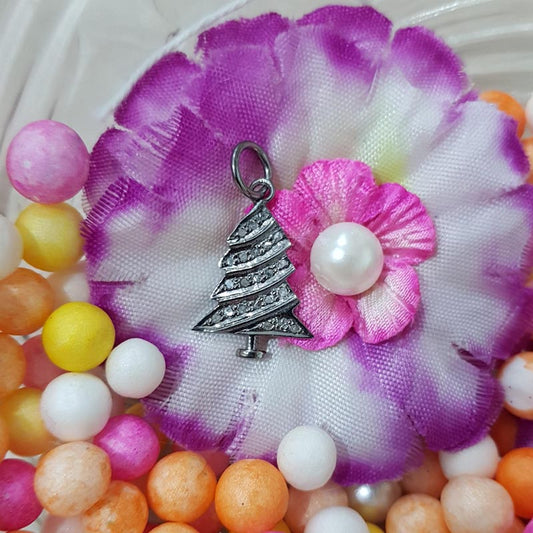 Festive Delights Christmas Charms, Good Looking Handmade Designer Fancy Tree Charms With Pave Diamond, Silver Jewelry