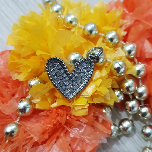 Charming Heart A Token of Love, Unique Design Handmade 925 Sterling Silver Beautiful Heart Charms With Pave Diamond, Minimalist Heart Charm, Silver Jewelry