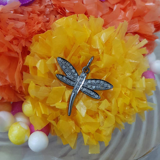 Graceful Pave Diamond Handmade Designer Butterfly Charm, Silver Jewelry