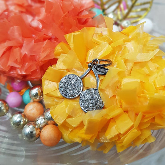 Pave Diamond Fancy Designer Silver Charm, Gift For Someone, Silver Jewelry