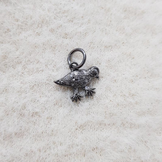 Good Looking Handmade Designer Beautiful Bird Charms With Pave Diamond, Silver Jewelry