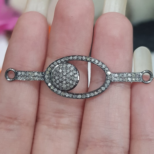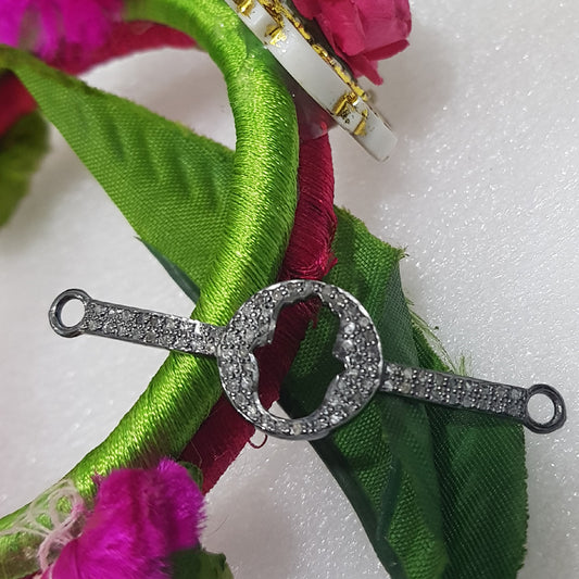 Handmade Designer Round Pave Diamond Wrist Rock/Connector, Round Fancy Connector, Silver Jewelry