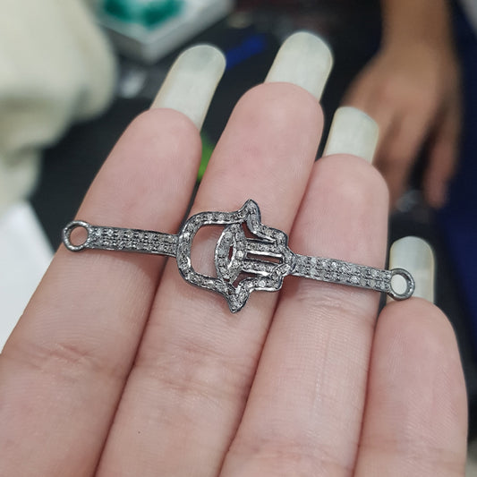 Hamsa Hand Designer Pave Diamond Connector, Gift For Love, Anniversary Gift