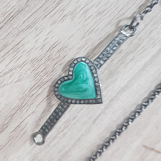 Lovely Fancy Designer Pave Diamond Silver Connector, Heart Connector, Silver Jewelry