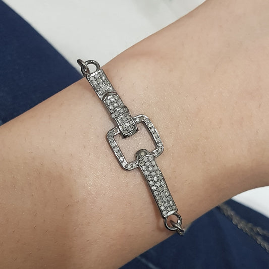Lovely Fancy Pave Diamond Good Designer Wrist Rock, Good Connector, Silver Jewelry