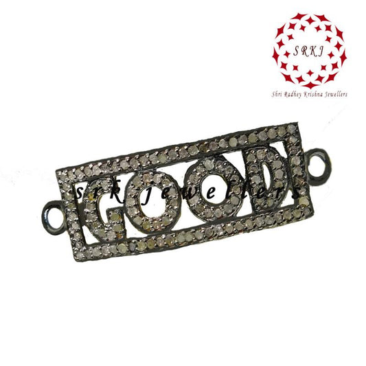 Gorgeous Handmade Fancy Designer Pave Diamond Silver Connector, Silver Jewelry, Gift For Love