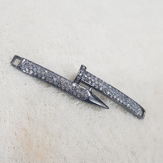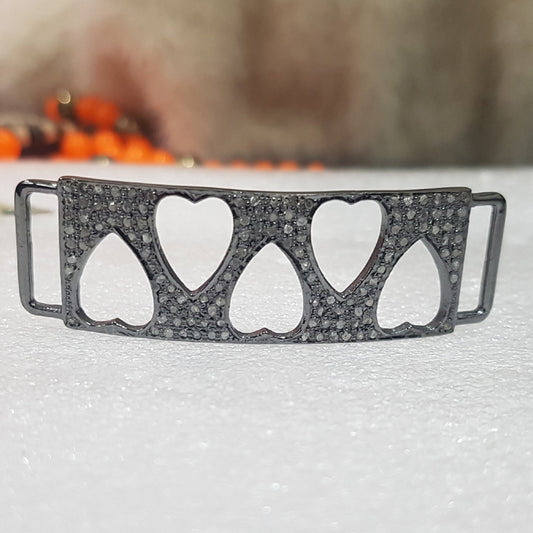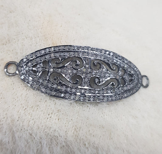 Gorgeous Handmade Pave Diamond Black Silver Connector, Silver Jewelry, Gift For Her, Him