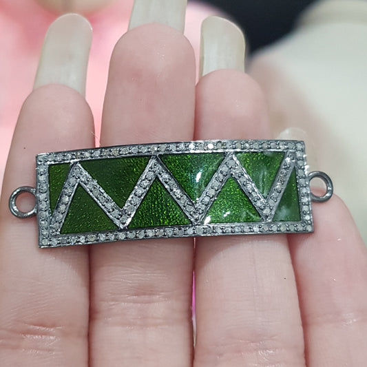 Graceful Looking Green Enamel Pave Diamond Connector, Silver Jewelry