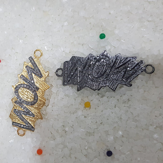 Handmade Style Pave Diamond Silver Connector, Silver Jewelry, Gift For Wife