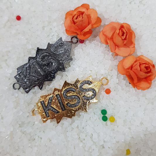 Lovely Yellow And Black Plated Pave Diamond Kiss Word Connector, Valentines Day Gift