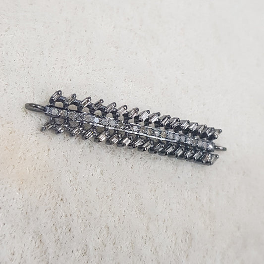 Handmade Designer Stylish Baguette And Pave Diamond Connector, Silver Jewelry, Gift For Someone