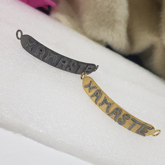Namaste Vibes Connector Yellow And Black Matte Finish Namaste Designer Connector, Silver Jewelry